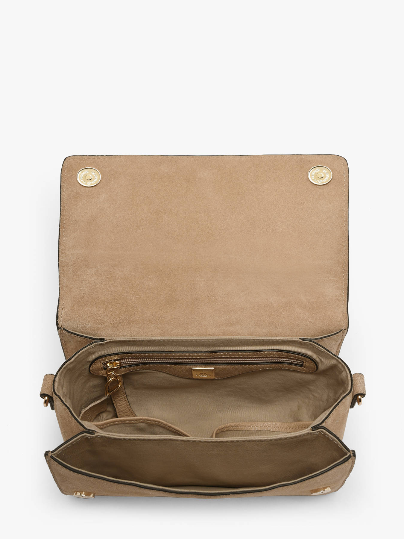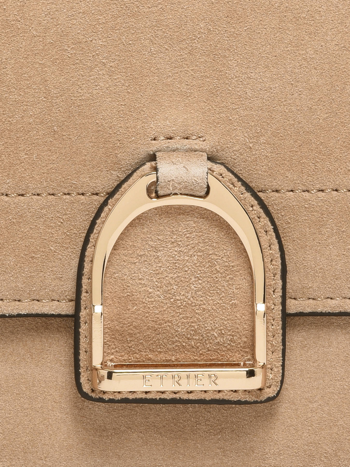 Le sac bandoulière ETRIER de la ligne ALTESSE SUEDE se décline dans son modèle M, le plus grand format. Cette nouvelle version de notre ligne iconique se pare d'un cuir velours au toucher doux et chaleureux mêlant élégance intemporelle. Le dos du sac est réalisé en cuir grainé pour une meilleure tenue. Il dispose d'un rabat aimanté orné du bijou Etrier doré, d'une petite anse pour un porté main raffiné, ainsi que d'une bandoulière ajustable et amovible pour une allure polyvalente.